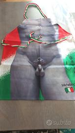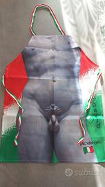 Grembiule con stampa artistica del David di Michelangelo. - Design ispirato alla celebre statua. - Bordi tricolore italiano. - Dimensioni 25x53x71cm.