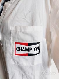 Grembiule vintage Champion marca statunitense di candele per motore. Abbigliamento da garage e officina. Seppur non è mai stato indossato presenta qualche macchia credo rimovibile tramite lavaggio e un leggero ingiallimento.