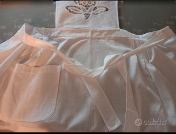 bellissima grembiulina con inserti in pizzo ,ricamo bianco,taschina e bretella , nuova in cotone