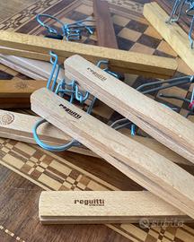 12 grucce per pantaloni vintage in legno. Sono in totale 12, di cui alcune un po’ allentate ma fanno tutte il loro lavoro. Tutti marchi diversi e colori diversi. Preferito lo scambio a mano così da poterle provare di persona. 11 singole + 1 doppia