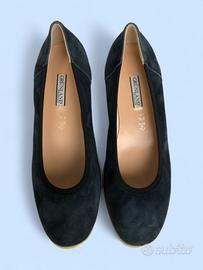 Bellissime décolleté Grülland dalla linea classica ed elegante, in vera pelle scamosciata blu, resa unica dal contrasto con il tacco pieno grigio opaco