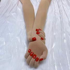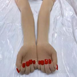 NUOVO. Lunghezza 40 cm. Guanti color Pelle con Unghia rosse. Effetto Naturale Realistico
