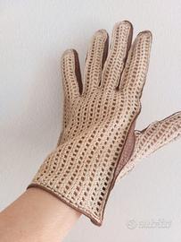 Guanti in finissima pelle di capretto e traspirante cotone traforato sopra, studiati per la guida. Nuovi, anche se privi di cartellino. Indossati favolosi, come non averli addosso.