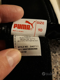 Guanti da portiere primi anni 2000, della Puma, tg. 10, nuovi ancora con la bustina protettiva e confezione originale. Articolo mai usato ed acquistato per uso collezione, viene messo in vendita per far spazio in guardaroba.