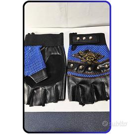 Guanti da sportivi da esterno con mezze dita, stile punk in pelle pirata con chiusura a fibbia, lavabili a mano