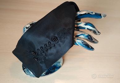 Guanti donna lunghi fino al gomito in raso nero, con elegante strasse sul dorso. Nuovi. tg. 7.
