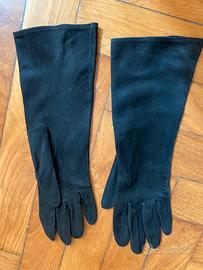 eleganti guanti vintage da donna originali anni '50-'70, in pelle scamosciata molto sottile e morbida, conservati in condizioni eccellenti, praticamente come nuovi.