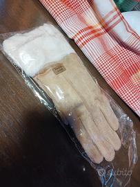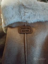 Guanti in pelle marrone chiaro con bordi in agnello bianco, morbidissimi, nuovissimi, mai indossati, taglia XL, foderati di pelliccia sintetica marrone. Unisex