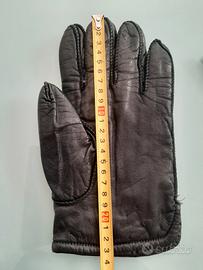 Guanti vintage (credo anni 70/80) di colore nero rivestiti con tessuto di colore beige. Misure in foto. Taglia XL credo corrisponda a 8,5. Il tessuto interno ha pelucchi. Estero in ottime condizioni. Disponibile a consegna a mano su Caserta o Napoli.