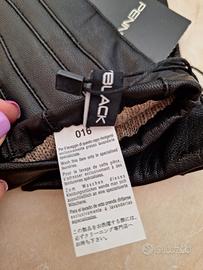 Guanti neri in 100% pelle di Pennyblack con un motivo di cuciture in rilievo nella parte superiore, lunghezza oltre il polso, caldo interno in lana, ottime rifiniture. Nuovi, mai usati e ancora legati tra loro con cartellini Pennyblack originali