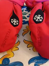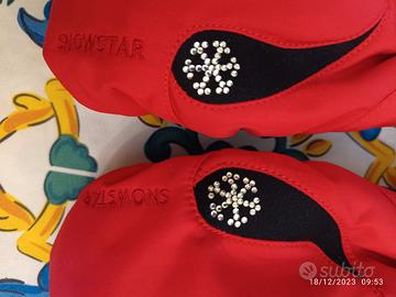 Vendo bellissimi e nuovissimi guanti invernali da donna , taglia M, mai usati. Belli ed eleganti, di colore rosso scuro, hanno calzata con il solo pollice separato. Molto caldi, interno in pile, dispongono di chiusura in velcro per un'ottima tenuta. Hanno un bellissimo fiocco di neve fatto di brillantini.