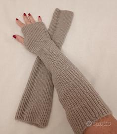 Guanti lunghi senza dita color beige cappuccino, caffèllatte. Unisex. Mittens gants. Morbidi e caldissimi. Nuovi senza cartellino