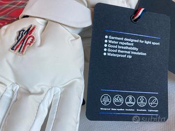 Vendo guanti Moncler Grenoble, colore bianco panna, taglia M. Caratteristiche tecniche e materiali: •Linea Performance & Style •Imbottitura in vera piuma d’oca: massimo isolamento termico •Inserti sul palmo e sulle dita in vera pelle per durata e grip ottimale •Impermeabili e idrorepellenti •Antivento e traspiranti •Cerniera impermeabile •Polsino regolabile con strap e cordoncino •Logo Moncler ricamato •Made in Italy •Completi di imballo originale e dust bag Moncler Condizioni: nuovi, mai indossati – perfetti anche come regalo 🎁 Prezzo trattabile