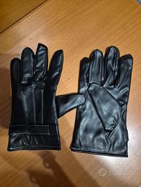 Guanti in finta pelle neri. - Materiale: similpelle. - Dettagli con cuciture a contrasto. - Chiusura con bottone sul polso.