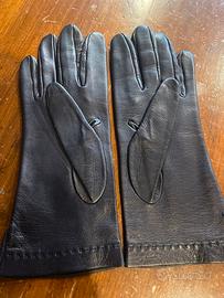 un paio guanti pelle morbidissima donna color blu notte sfoderati e con impunture dal dito medio 23 cm, larghezza polso 9 cm e larghezza palmo cm 8.