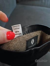 Guanti in pelle nera e cashmere da donna, marca Tuscan's made in Italy, taglia 9