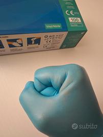 Guanti monouso elasticizzati in VITRILE (Vinile/Nitrile Blend) senza polvere ideale per un utilizzo ospedaliero ed ambulatoriale.