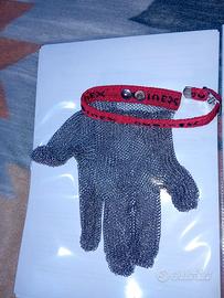 Guanto da macelleria professionale, realizzato interamente in acciaio inossidabile . E' un guanto di sicurezza che serve a proteggere dall'uso accidentale del coltello. Ideale sia per la mano destra che per la mano sinistra. Regolabile nella chiusura al polso, si indossa sulla mano che trattiene l'ostrica,pesce,carne da aprire.