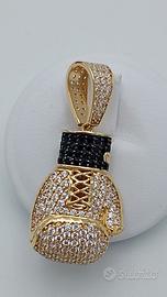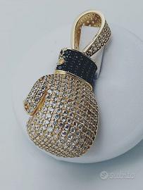 Bellissimo Guantone da pugilato in oro massiccio 18 carati con pavè di brillanti neri e bianchi. Peso 9.55 grammi.