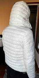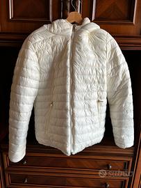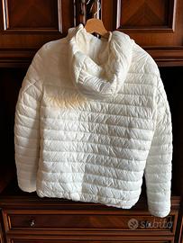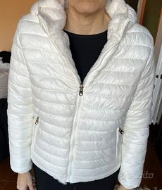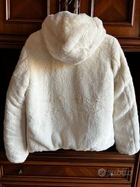 Giubbino double face col. bianco da donna. Taglia M. Piumino da un lato con tasche e finta pelliccia dall'altro sempre con tasche. Cappuccio. Nessun difetto in quanto mai indossato!