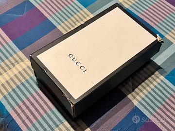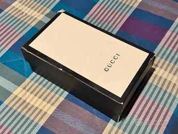Scatola confezione originale bianca e nera per scarpe sneakers Gucci ACE Tigre Tiger bianche con segni d'usura, taglia 12/45