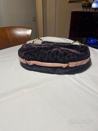 Vendo Gucci Bamboo Hobo originale vintage, modello a mezzaluna in tessuto bordeaux con finiture in pelle martellata e iconici dettagli in bambù.