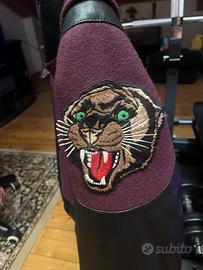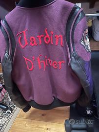 Gucci burgundy Bomber/Varsity Jacket “Jardin d’Hiver” – RoaringTiger Patch – Originale Bomber/giacca Varsity con maniche in pelle, collezione Alessandro Michele con scritta “Jardin d’Hiver” ricamata sul retro, patch tigre ricamata sulle spalle, patch lettera “A” sul petto e interno animalier iconico Gucci. Taglia Gucci 46 (S/M) Prediligl consegna a mano. Valuto spedizione con tutto subito. No perditempo