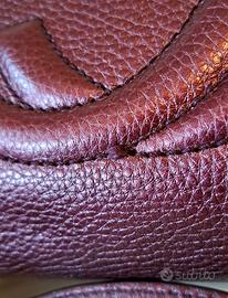 Gucci bourgundy leather soho large - Come da titolo svendiamo a soli 920€ più spedizione questa bellissima borsa da spalla,a tracolla grande in pelle martellata con tracolla di metallo di color oro e nappa in pelle della nota marca Gucci,Mai Usata.Gli interni sono spaziosi in grado di contenere tutti i tuoi oggetti essenziali e quotidiani con eleganza e stile.Regalo non gradito pagato da quel che sò ben 1650 sterline ( 1.900€ circa) 6/7 anni fa,e che ho aperto e conservato in armadio tutti questi anni senza mai indossare per evitare di rovinarla visto che per forma e colore non era di mio gradimento.La borsa in questione sia internamente che esternamente è in condizioni perfette come nuova fatta eccezione per la parte frontale bassa che come ben visibile nelle foto (guardate l'ultima foto) presenta un piccolo punto di cucitura che è uscito leggermente fuori sede, per il resto la borsa sia internamente che esternamente e in condizioni perfette senza alcun segno.