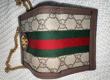 Borsa/portafoglio di gucci, simile a portafoglio stile Ophidia, edizione limitata, rara per le sue caratteristiche, porta contanti e possiede una tasca interna. Attacchi di serie con catenella dorata.