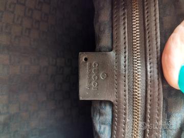 in buone condizioni qualche piccola imperfezione visibile in foto misure 38-22, in tessuto marrone e rifiniture in pelle marrone, con sacca antipolvere