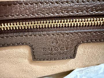 Borsa Gucci GG supreme beige ed ebano con finiture in pelle marrone.