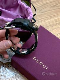 Splendido ed accattivante bracciale Gucci maxi-studded leather cuff wristband bracelet, studs details, grey finish metal, taglia M.
