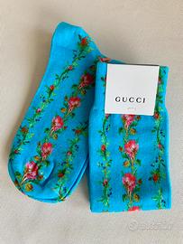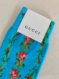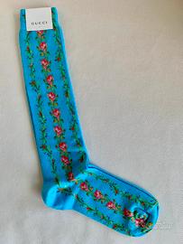 Splendide calze Gucci modello long roserie socks bluette, lunghezza gambaletto ovvero sotto al ginocchio.