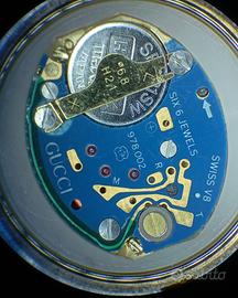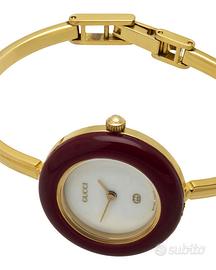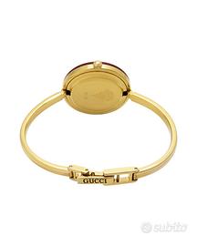Gucci Change bezel 11/12 Quartz Ladies ; Peso: 21.45; Misura: da 13 a 15cm; Materiale: Acciaio; Descrizione materiale: Acciaio placcato oro; Anno: 1990 (circa); Corredo: Garanzia del rivenditore, Scatola originale; Referenza: 11/12; Carica: Quarzo; Calibro: Eta 978.002; Rubini: 6; Colore quadrante: Bianco; Corona: Acciaio; Diametro cassa: 26mm; Ghiera: Ceramica Materiale cassa: Acciaio; Materiale cinturino: Acciaio; Vetro: Zaffiro Cod: 5338-b