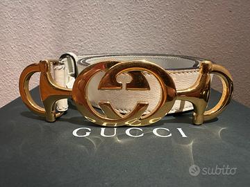 Cintura della Gucci in pelle bianca indossata 1/2 volte perché troppo larga per me . È nuova anche con la scatola