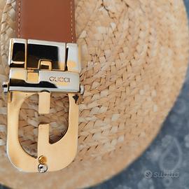 cintura Gucci con fibbia girevole che permette di essere usata sia dal lato nero che da quello marrone cuoio, in morbida pelle, usata , condizioni ottime.