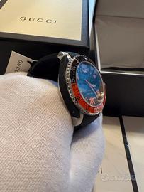 Gucci Dive Limited Edition YA136333 è un orologio unisex distintivo e sportivo, in cui funzionalità e design iconico Gucci si incontrano. Il quadrante nero con accenti arancioni, simboli iconici Gucci, abbinato a una cassa robusta in acciaio inossidabile e a un cinturino in gomma confortevole, conferisce un aspetto potente. Grazie al movimento al quarzo svizzero, al vetro zaffiro e all'elevata resistenza all'acqua, questo orologio è adatto sia all'uso quotidiano che ai momenti attivi.