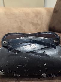 Design:Presentano una montatura sportiva e avvolgente in acetato nero lucido con lenti grigie, un design molto popolare all'inizio del millennio.