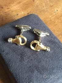 Gemelli Gucci originali (marchio visibile nelle foto), vintage anni '80, gemelli a morsetto di cavallo, collezione Gucci equitazione.