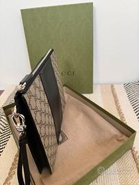 Vendo pochette Gucci, trama GG, con scontrino di acquisto. Originale. Condizioni pari al nuovo. Completa di scatolo, dust bag e porta scontrino.