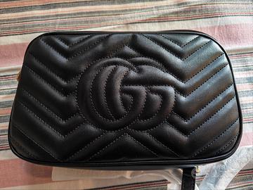 Borsa Gucci GG Marmont misura piccola in pelle matelassé nera. L'articolo è nuovo, mai usato, con ancora le protezioni originali sulla tracolla. Un classico intramontabile in condizioni perfette.