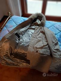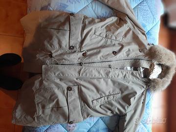 Parka Co imbottitura in piuma d'anatra, chiusura zip e bottoni originali Gucci, cappucci con pellicciotto, tasche, maniche lunghe, coulisse.