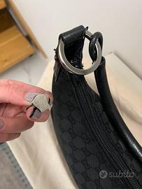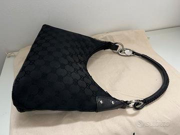 Bellissima gucci hobo in tela nera,originale e stata cambiato cerniera con cursore,(originale va spedito insieme),misura piccola 24/20/8 sm piu meno.