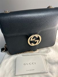 Borsa Gucci originale modello interlocking in vera pelle misure 20x15x8 da portare a spalla o tracolla. In ottime condizioni,fibbia leggermente segnata. Completa di dust e cartellini.