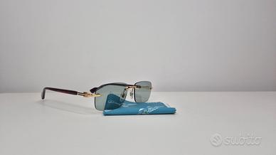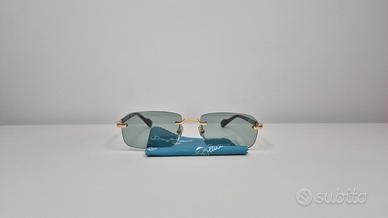 Glasant ovvero senza la montatura intorno, con dettagli oro e aste bordeaux, lente verde a forma rettangolare.