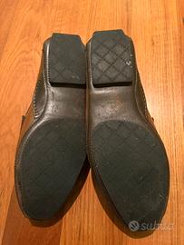 mocassino sfoderato con suola in gomma. riporta un piccolo segno sulla parte posteriore che sparisce mettendo del lucido ottime condizioni