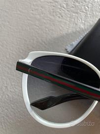 Occhiali da Sole Gucci originali. Bianchi con stanghette e lenti degradate fumé/azzurre. Logo sulle stanghette poco visibile, ma ben leggibile sulla lente