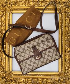 GUCCI OPHIDIA CAMERA BAG POSTINA A TRACOLLA CANVAS “GG” E PELLE BEIGE-MARRONE VINTAGE