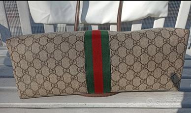 Gucci Ophidia GG Supreme Tote (cod. 631685) – Nuova mai indossata Splendida borsa Gucci modello Ophidia GG Supreme tote, una delle icone più richieste della maison, ancora attualmente in collezione. Realizzata nell’inconfondibile tela GG Supreme beige/ebony con iconica banda Web verde e rossa e logo Double G frontale in metallo dorato. Finiture in pelle marrone e interni capienti, perfetta sia per uso quotidiano che come borsa da lavoro. Dettagli Brand: Gucci Modello: Ophidia GG Supreme Tote Codice: 631685 96IWB Materiale: Tela GG Supreme + pelle Colore: Beige/Ebony con banda Web verde/rossa Hardware: Oro Dimensioni: circa 30 × 40 cm Made in Italy Condizioni: Nuova, mai indossata, pari al negozio. Borsa autentica Gucci, modello ancora presente in boutique con prezzo retail di circa €.1590 Perfetta anche come regalo o investimento nel lusso. Disponibili ulteriori foto.
