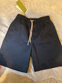 Vendo pantaloncini Gucci originali da uomo, nuovi con cartellino e mai indossati. Modello casual di alta gamma, realizzato in 100% cotone e Made in Italy. Dettagli del prodotto (da etichette e foto): •Marca: Gucci •Condizione: Nuovi con cartellino •Taglia: 44 EU / IT (170/70A) •Colore ufficiale Gucci: Blue Multi (visivamente molto scuro, tendente al nero) •Materiale: 100% Cotone •Made in: Italia Caratteristiche principali: •Vita elasticizzata con fascia ampia per una vestibilità comoda e regolabile •Laccino tricolore verde/bianco/rosso, iconico richiamo ai colori storici Gucci •Terminali del laccino in pelle, dettaglio di pregio che sottolinea la qualità del capo •Logo GUCCI ricamato sul retro della cintura •Tasche: due laterali + due posteriori •Vestibilità casual, pratica e versatile Autenticità garantita Capo 100% originale Gucci, completo di cartellini originali e codici identificativi come da foto. Motivo della vendita Taglia non adatta
